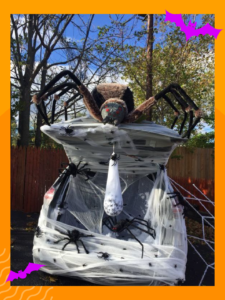 Esta escena de terror puede replicarse con papel higiénico, gasa o cualquier tela que permite rodear la parte trasera del vehículo. Para un mayor impacto, la utilización de figuras arácnidas completarán esta ilusión.
